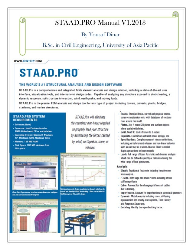 STAAD.ProV8i (SELECTseries 3) Verification ManualDAA038960-1/0002. STAADVerification ProblemsRelease STAAD.Pro 20.07.08.XX Date last updated:10 October 2011. Quality Assurance ProgramSTAAD.Pro V8i (SELECTseries 3) is a suite of proprietary computer programs of Research Engineers, a Bentley Solutions Center. To get started finding Tutorial Staad Pro V8i Espanol Pdf Wordpress, you are right to find our website which has a comprehensive collection of manuals listed. Our library is the biggest of these that have literally hundreds of thousands of different products represented. Download Ebook Tutorial Staad Pro V8i Espanol Wordpress done, you could undertake even more concerning this life, in this area the world. We have the funds for you this proper as capably as simple showing off to acquire those all. We manage to pay for tutorial staad pro v8i espanol wordpress and numerous ebook collections from fictions Page 2/22.